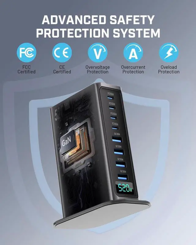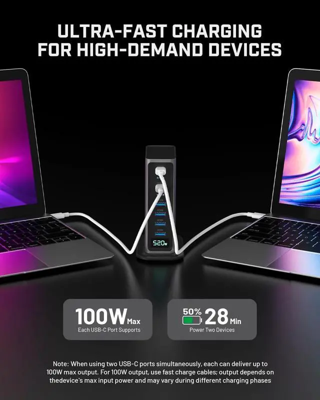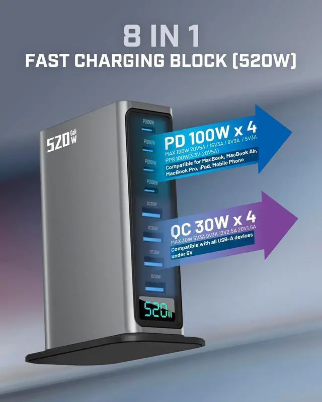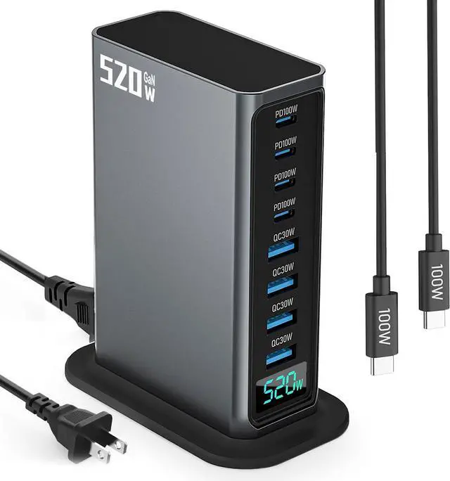 Fast USB Charger with Fast Response ServiceYou get 520W USB Desktop Charger + 3.3 ft PD100w Type-C charging cable +5ft power cord + user manual. If you have any questions in the use of the product, please feel free to contact us, we will do our best to provide you with satisfactory customer service.