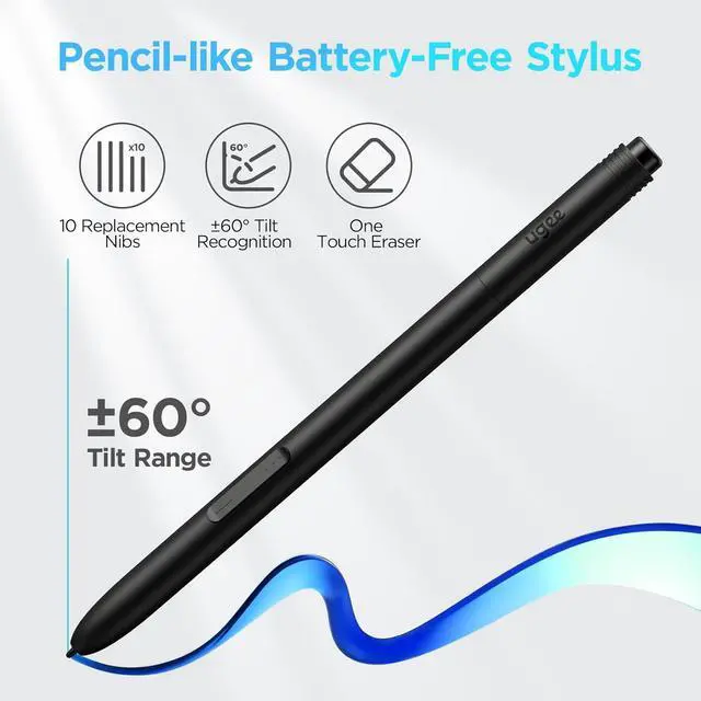 [Dual Type-C Ports&3 in 1 Cable] The UE12 drawing pad comes with dual Type-C ports, allowing blind plug-in and providing flexible connection methods. It supports direct connection via a single full-featured USB-C cable, enabling you to immediately start your creative journey on computers, laptop, Android phones and tablets.