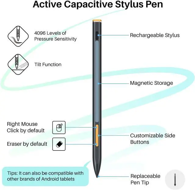 Equipped with Essential Accessories: The android tablet with pen including a portable drawing tablet and stylus, and a leather case holder that supports multiple angle adjustments. installed AF coating and an AG writing film with anti-glare interference, which is resistant to oil stains, fingerprints, and glare interference. and a USB-C charging cable with a power adapter are also carefully equipped.