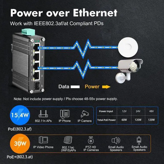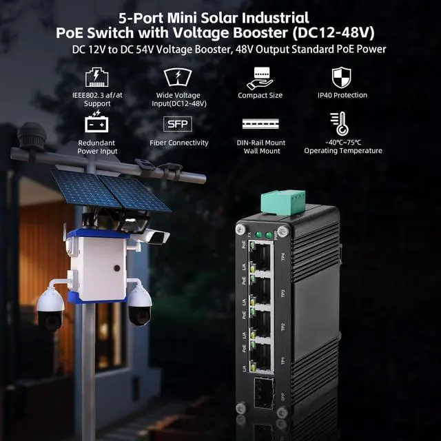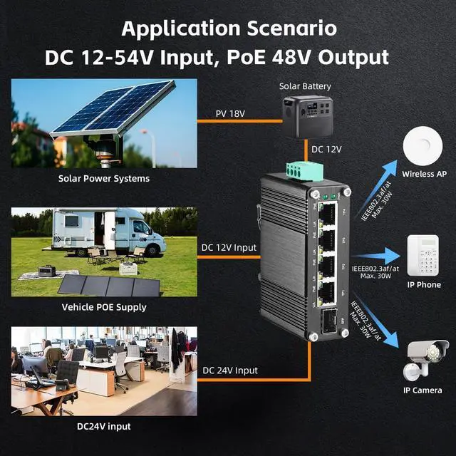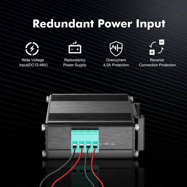 Widely Use: Mini Size only 2.9 x 7 x 8.5 cm; includes DIN rail/Wallmount kit, Support auto-negotiation, plug and play, no configuration needed, low-power consumption CPU, no fan quiet operation, green energy saving, suitable for various networks, 12V-48V DC power supply, ideal for solar energy, battery system, outdoor, RV, farm, security access control, etc.