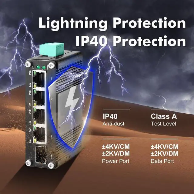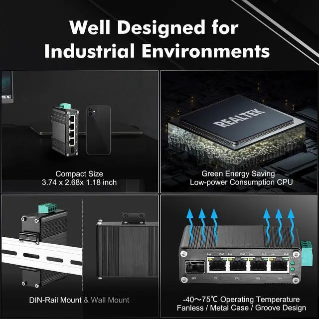 Industrial Design: IP40 protection grade, aluminum alloy case, industrial grade chips and electronic components, working temperature -40~75°C(-40~185°F), super robustness, anti-lightning, anti-static and anti-overload protection, adapt to various harsh environments