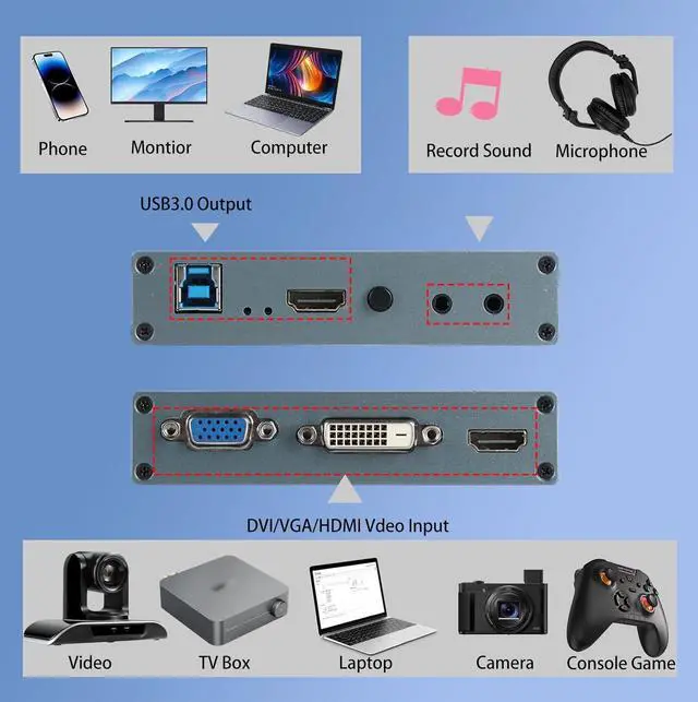 Install Drivers: Once plugged in, the capture card is identified automatically. No drivers or external power supply are required. Detects input and automatically adjust output. Well Suited For Beginners, This game video capture device is ideal for live broadcasts, conference rooms, video recording, etc