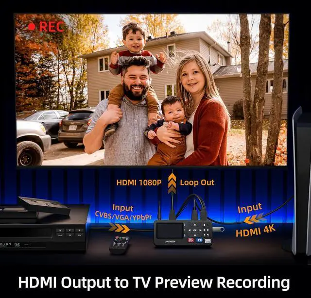 Experience the ultimate convenience with our plug-and-play video capture box, designed for effortless connectivity without the need for a computer. Boast large storage options with support for USB drives up to 512GB, hard disks up to 8TB, and SD cards up to 512GB, ensuring you have ample space to capture every moment.