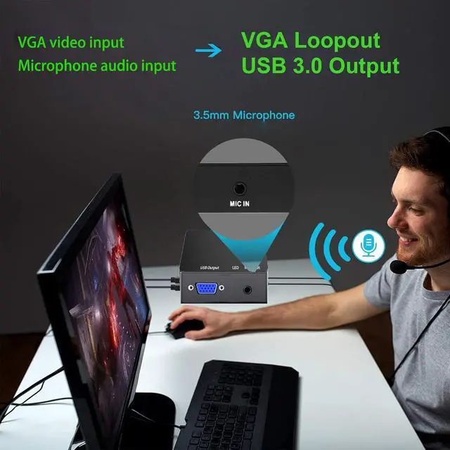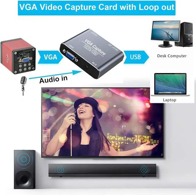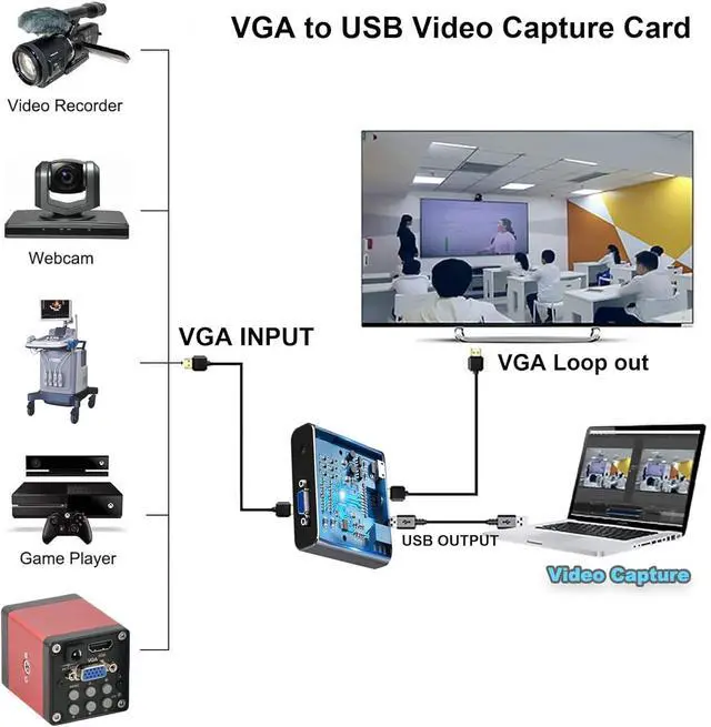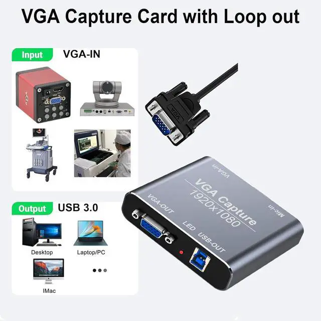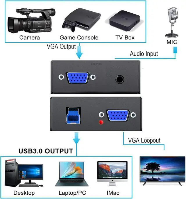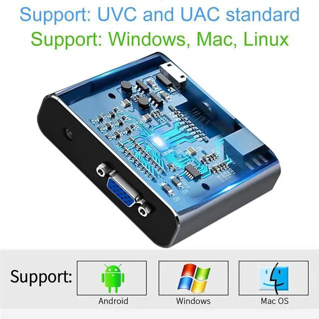 LightweightSize: 3.15 inx 2.56 inx 0.79 in, VGA game video capture device is stylish and compact. Small size capture card for you to carry, no problem for outdoor and indoor live streaming, an ideal capture device for video recording.