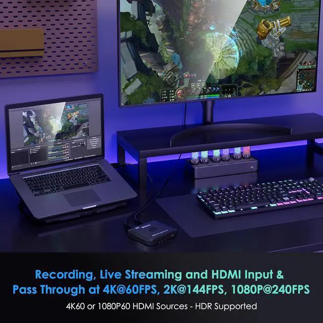 RGB24 & Surround Stereo SoundThe 4K 60fps HDMI video capture card supports RGB24 color format (Max 1080P@60Hz RGB24), which provides accurate color representation, ensuring that your gameplay recordings are vivid and true to life. Immerse yourself in rich and high-quality surround stereo sound, enhancing your gaming experience and making you feel like you're right in the middle of the action.