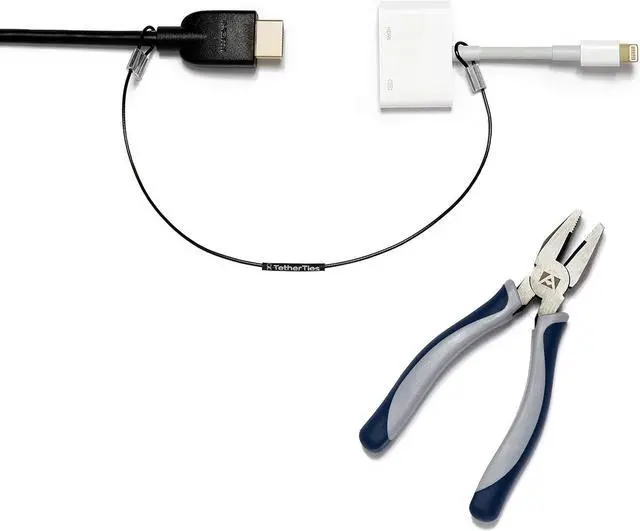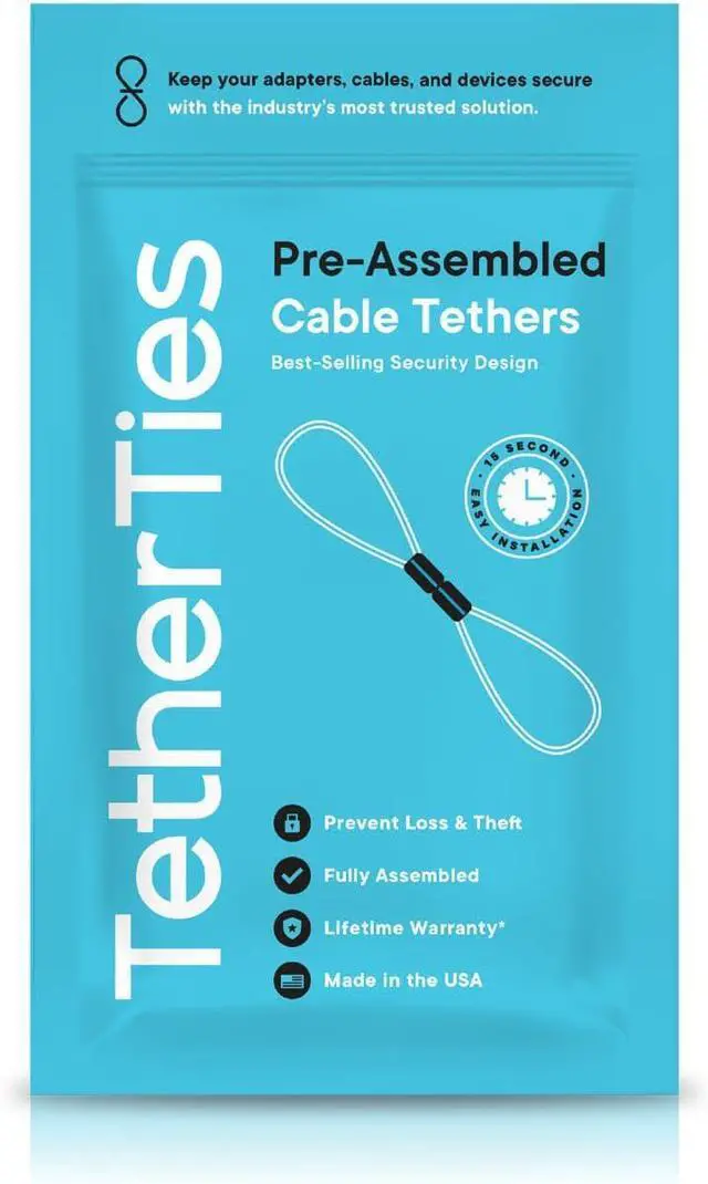 NO ASSEMBLY REQUIRED TetherTies come fully assembled. Simply place the TetherTie over or around the items you want to secure, slide the cable until it is tight, and crimp it shut. No hassle.