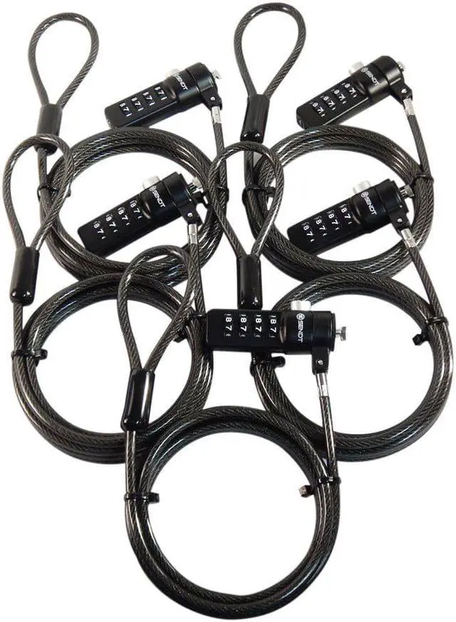 Five Pack of Sendt Black Notebook/Laptop Combination Lock Security Cables