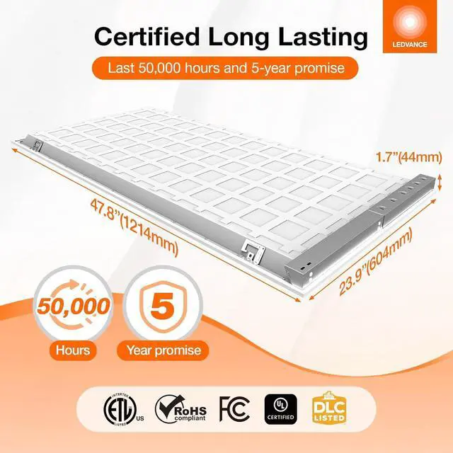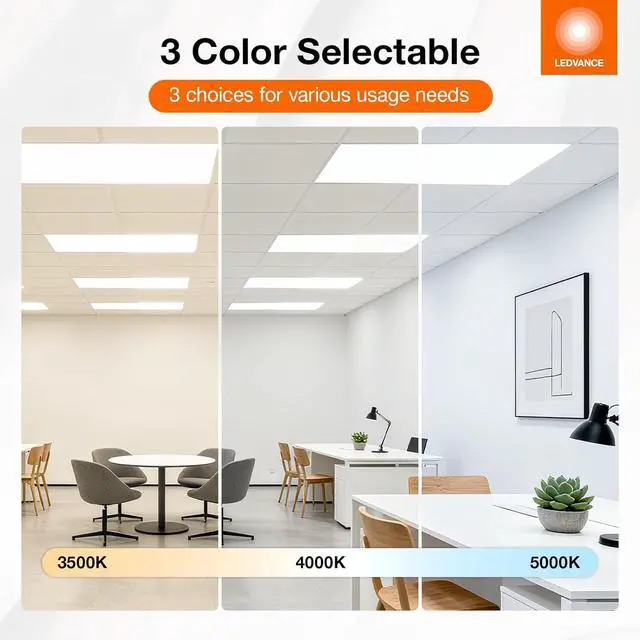 The LEDVANCE Dual Selectable Backlit Panels are a versatile and economical solution for offices, schools, hospitality and retail areas. Available in 1x4, 2x2, and 2x4, they offer backlit technology that offers even lighting distribution without shadowing. Take advantage of the 3 color selectablity for maximum flexibility: 3500K, 4000K and 5000K. Our panels are also wattage/Lumen selectable delivering three different lumen outputs in the same product. PMMA lenses that do not yellow over time, a crisp CRI of 80, and dimmability function. Our LED panels are an excellent replacement over traditional panels as the offer energy savings up to 64% over a lifetime of 50, 000 hours backed by our 5-year promise.