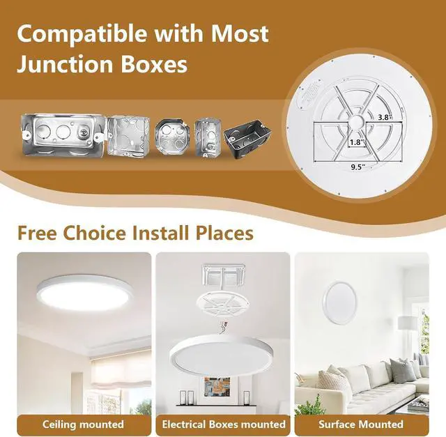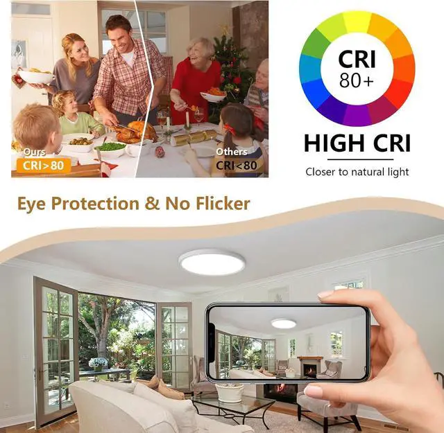 Excellent Lighting Performance Our led ceiling light fixtures built-in light filtering technology LEDs as its side light source, while the Nano soft light coverage to provide 360°wide uniform lighting, providing you with a soft, even and non-stinging light, and illuminating a larger area. No flickering, no buzzing.