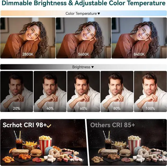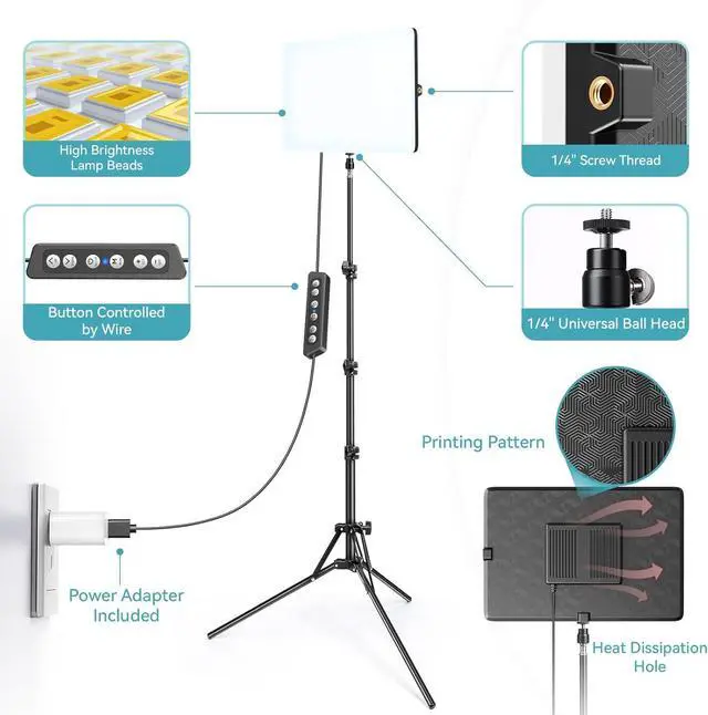 The 1/4 universal ball head can be rotated 360 degrees vertically and tilts 180 degrees horizontally. The ball head mount can be adjusted into most any position for a better viewing angle. Elevate your content creations with our flicker-free LED video light, perfect for portraits photography, video recording, makeup, live streaming, vlogging, YouTube videos, TikTok, and more