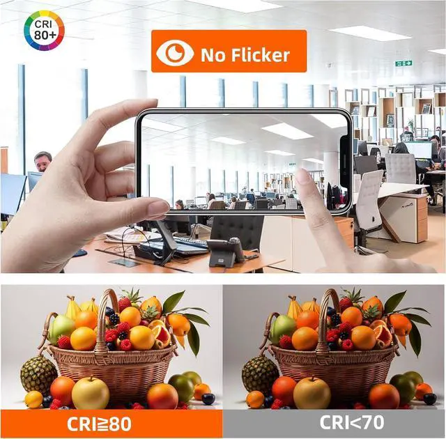 Super Bright & Energy Saving: 2x4 ft LED flat panel Drop Ceiling light boasting a powerful 7800 lumens output, equipped with premium high-efficiency LED chips that deliver a 5000K natural white light. Our LED flat panel is engineered for maximum energy efficiency, cutting power consumption by 85% compared to traditional lighting. Perfect to replace 200W fluorescent tube fixture