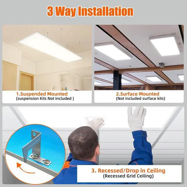 Easy to Install---The LED panel light features a slim and low-profile design, allowing for quick installation of 2x4 LED Drop Ceiling Light Fixture by yourself. Light use 22AWG wire and offer three installation options-recessed, surface-mounted, and suspended-to meet different needs. please ensure to turn off household power before installation! They input voltage is 110-277VAC. (Attention: Suspension and surface mount kits need to be purchased separately )