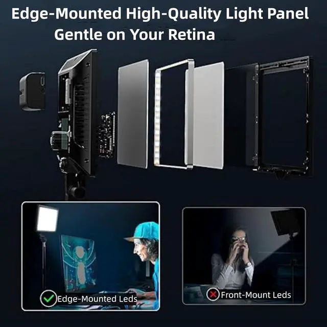 Brightness & Color Temperature Adjustable: Our LED Video Light consists of 118 high-quality LED lamp beads, installed at the edge, with professional panel, the light is soft and flicker-free. Color temperature 3200K-5600K, dimming brightness 1%-100%, power 16W, CRI95+, lumens 1080Lux ( 0.5 m), as your photography light, no matter from which angle, can perfectly show every detail of you!