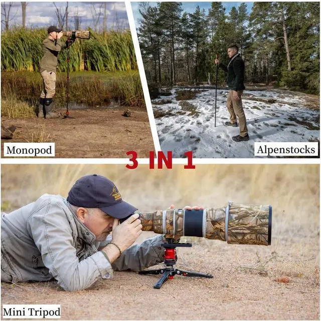 3 in 1 DesignIt integrates the functions of monopod trekking pole and low tripod, and the switch function is easy to operate. The low tripod can be used in three angles.
