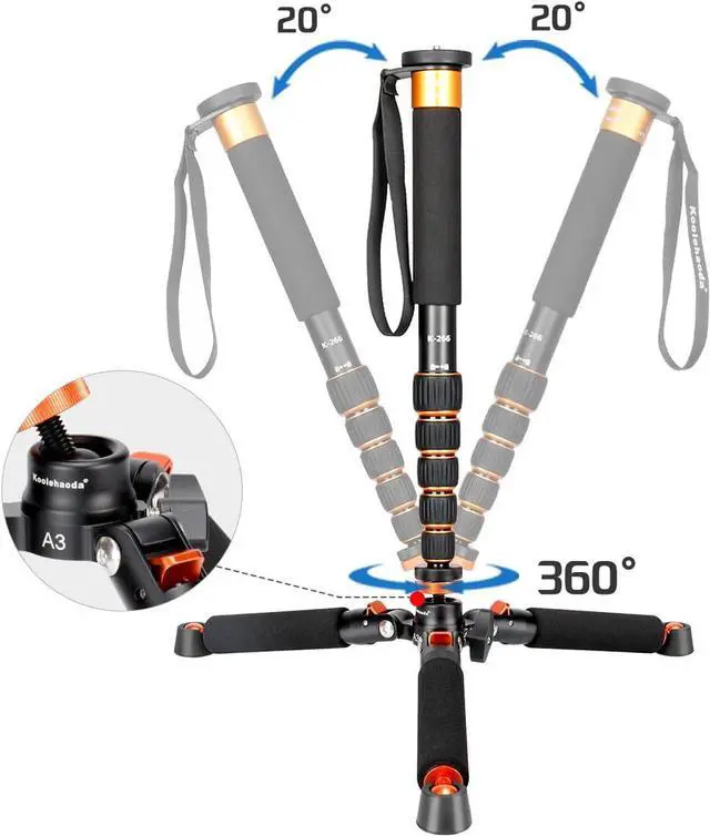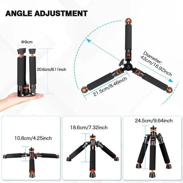 Tripod base can help the monopod achieve 360 degree panoramic rotation and tilt of 20 degrees, with 1/4" and 3/8" screw can be used as a desktop mini tripod.