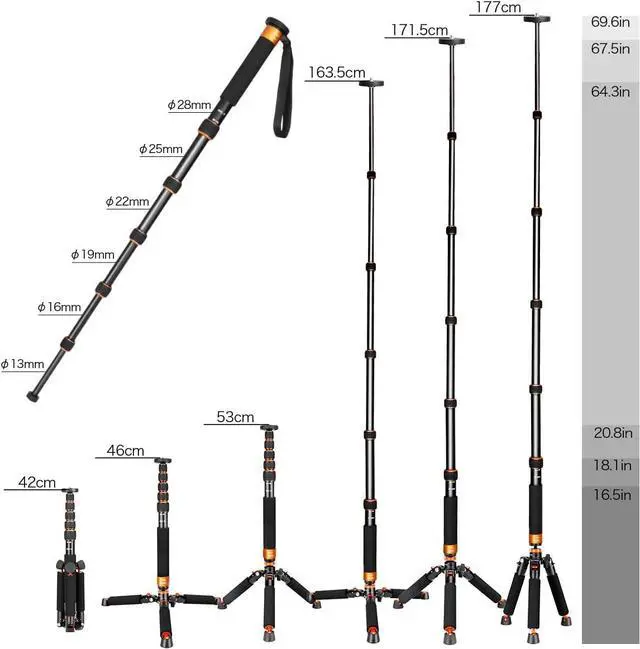 Monopod with rubber feet and metal spike for added stability. Suitable for shooting in various scenes and ground. Monopod can be used to alpenstock. It is light and convenient, also give you other choice.