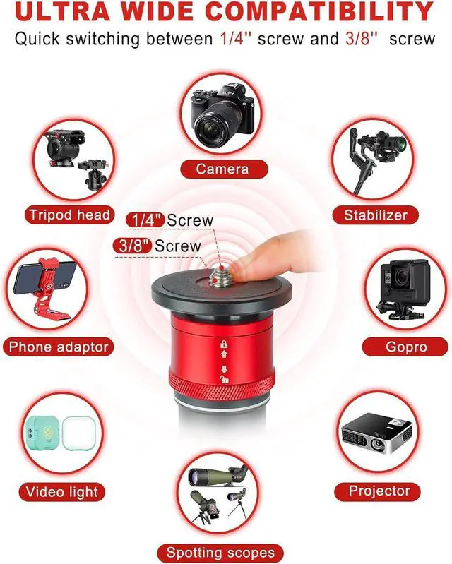 Pole: Detach the base for a low-profile spreader or tabletop tripod. Use the pole alone as a stabilizer extension or durable trekking pole (aluminum build, 11 lb payload).