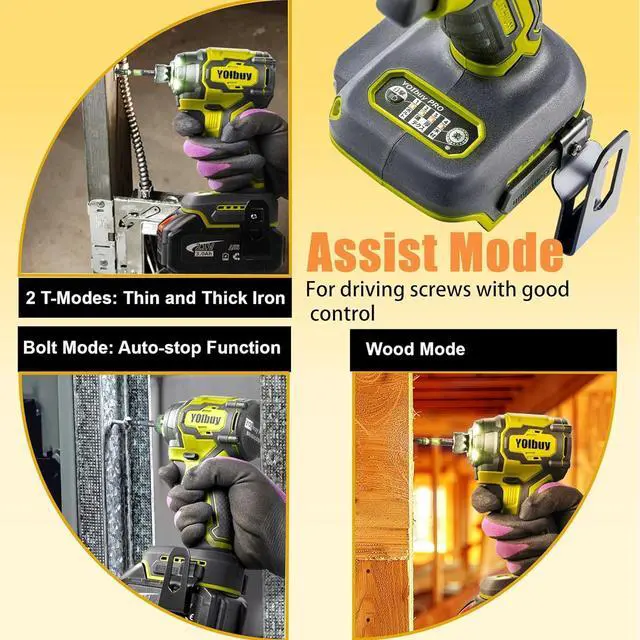 INTELLIGENT MODE: The advanced impact driver offers intuitive trigger-controlled variable speed even at low speeds, which others achieve. It features 4-speed settings, 4 smart assist modes (Wood, Bolt, Thin Steel, and Thick Steel) and Auto-stop function. Whether you're assembling furniture, installing cabinets, or handling repairs, this impact driver offers precise torque control where it matters most.