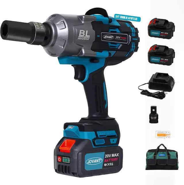 Packaging Includes & Warranty: 1/2" to 3/4" Socket Adapter * 1; Tire Tread Depth Gauge *1; 4.0AH Batteries * 2; Charger * 1; Tool Bag * 1; Cordless Impact Gun*1; Manual*1. The body comes with a 12-month warranty (battery not included).