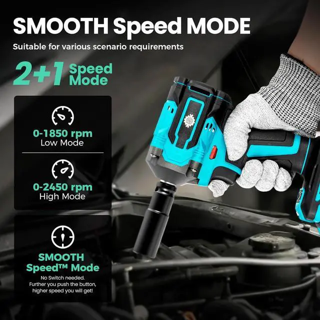 Cordless Impact Wrench High Torque, 442.5Ft-lbs, 1/2" Brushless Impact Gun, 2450RPM High Torque Gun, 4.0 Ah Battery, Electric Impact Motor Variable Speeds for Car/Truck/RV/Mower, 20V
