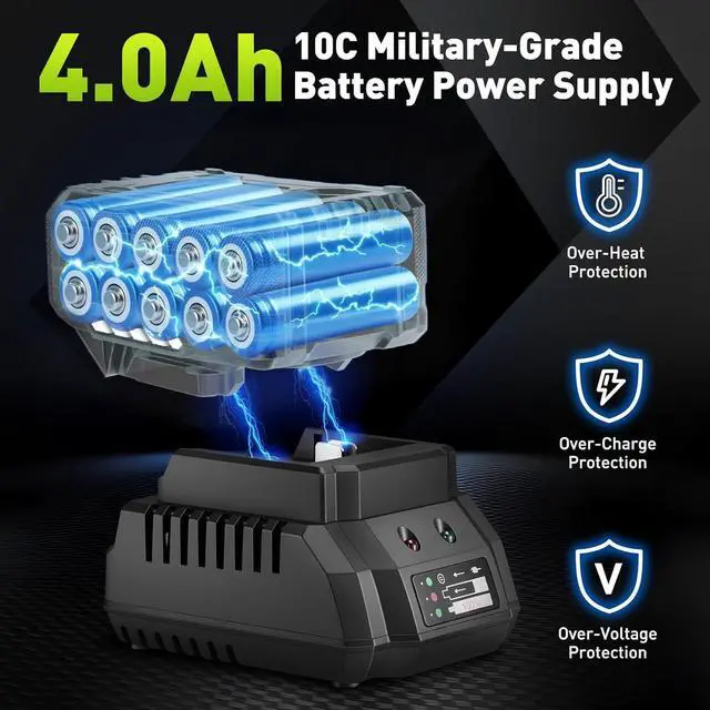 WIDELY APPLICATIONSWORKBLESS 1/2'' cordless impact wrench comes with 1x impact wrench, 2 x 20V 4Ah battery pack, 1 x battery charger, 4 x Cr-V sockets(17mm/19mm/20mm/21mm)1 x buckle1 x manual. This impact gun set help you easy to handle and maneuver, providing excellent control and reducing tired during tasks such as changing lawn mower blades, repairing car tires, or installing heavy equipment.
