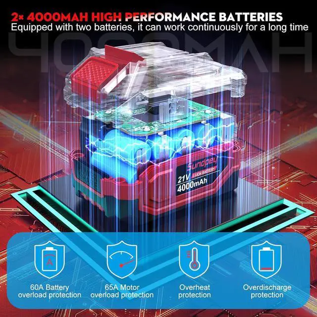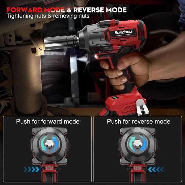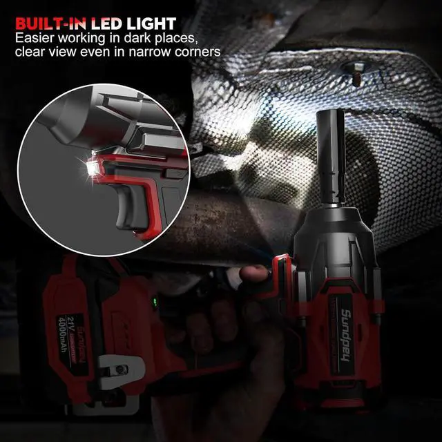 Large Capacity & Peace of Mind: The Sundpey electric impact gun comes with 2pcs 4000mAh high capacity batteries and a quick charger. With 50% more runtime than 2.0 Ah batteries, it reduces the need for frequent battery changes and improves work efficiency. Our 1/2inch impact gun also have 5 battery protections which are over-charge, over-discharge, over-temperature, over-voltage and over-current, which gives you peace of mind while working more efficiently