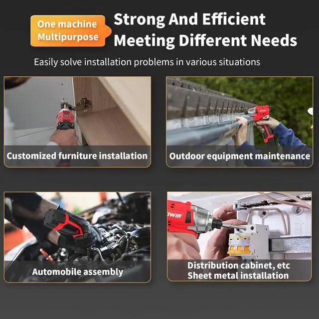 Powerful rotating force and automatic stopThis cordless impact driver with a maximum torque of 105ft-lbs, it is an ideal electric screwdriver for tightening thick wood such as planks. In the case of reverse rotation, the automatic stop function can automatically stop the rotation after 1 second of rotation through the trigger, so as to prevent the nut from being lost due to excessive force. You can turn on/off.