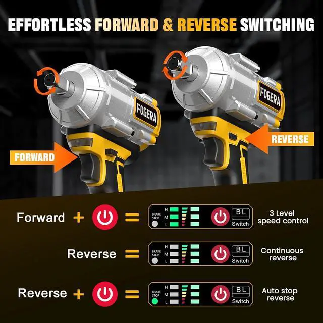 Your Impact Wrench: The brushless motor in this electric impact wrench offers longer runtime, less heat, and quieter operation. Paired with a trigger-activated LED light, it has 3 speed modes (low/medium/high) for delicate work or high-torque jobs, matching your impact wrenchs performance needs.
