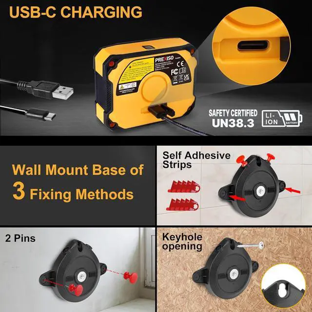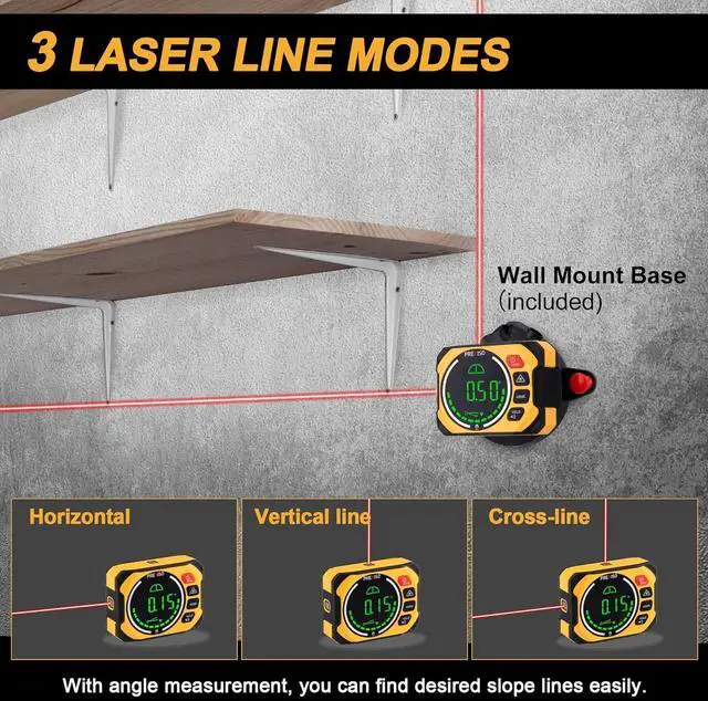 Bonus Wall Mount Base: Wall mount base helps free hands for marking. It comes with 3 fixing ways: 1. with 2 pins for rough surfaces; 2. with 10 self-adhesive strips for smooth surfaces; 3. with Pin Holes on top for any surface