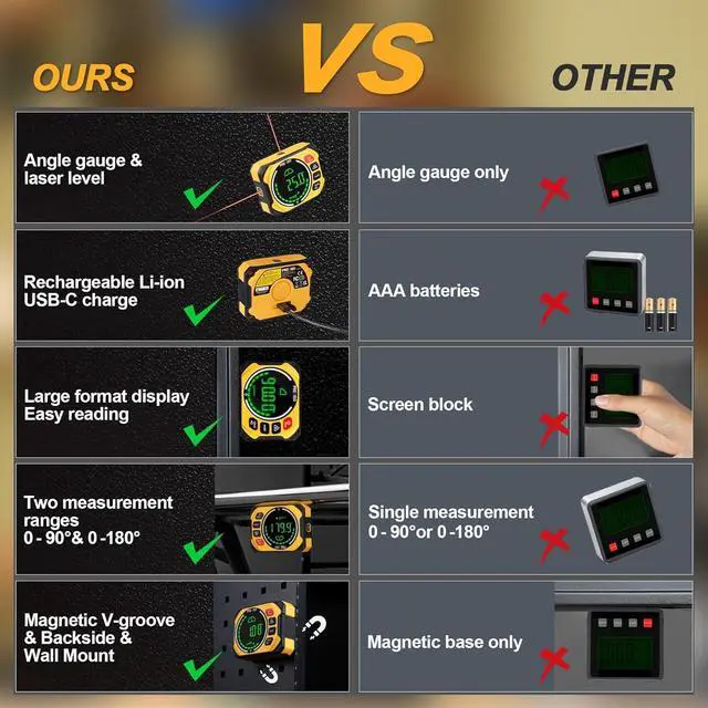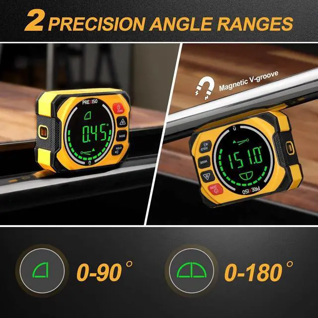 Magnetic Base & Auto Reversible Display: The pocket angle finder features a strong magnetic base. When upside down, the LCD display with backlight auto-rotates, ensuring fast and clear reading.