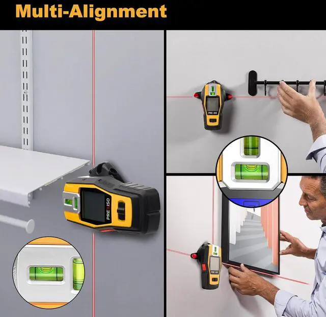 Muti-Fuction & Wide Use: PREXISO 2-in-1 Stud Finder with Laser Level is a versatile and reliable tool that can make construction and decoration jobs more efficient, and an ideal tool for DIYers, decorators, perfect for various indoor tasks like hanging pictures, mounting shelves, installing frames, locating wood and metal studs, and live AC wires. It's also a great gift for handy friends or family on special days