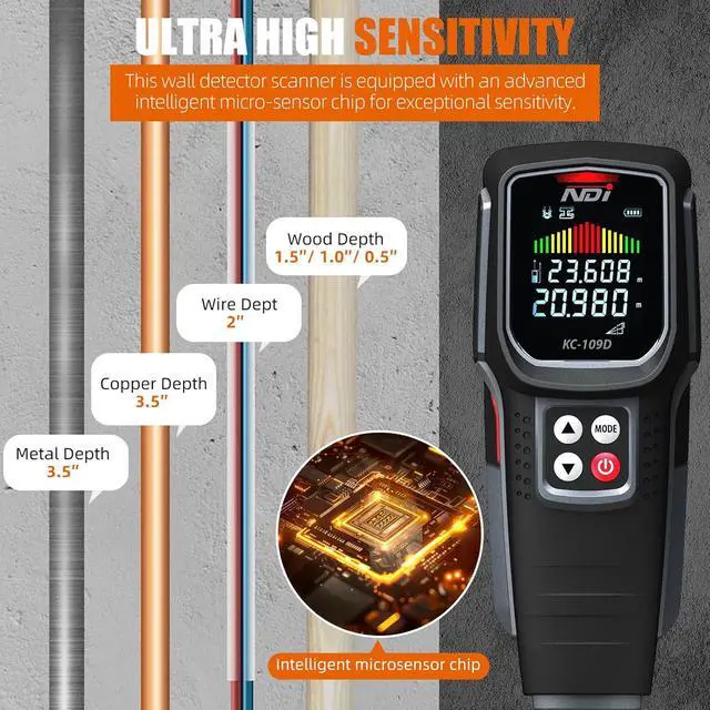Safety Protection: Stud finder accurately detects hidden AC wires in walls, preventing accidental contact with wires while drilling or cutting, significantly improving work safety. This feature is for users who need to drill holes in walls, install electrical appliances, or perform other construction work, helping to effectively reduce electrical accidents or damage caused by incorrect operation.