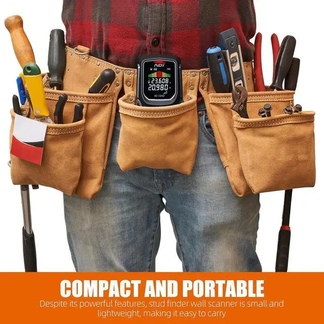 Compact and Portable: Despite its powerful features, stud finder wall scanner is small and lightweight, making it easy to carry. Whether you're moving from job site to job site, working in different areas of your home, or traveling on a project, it easily fits in a tool bag or handheld. Its portability ensures you always have a reliable measuring tool with you wherever your work or activities take you.