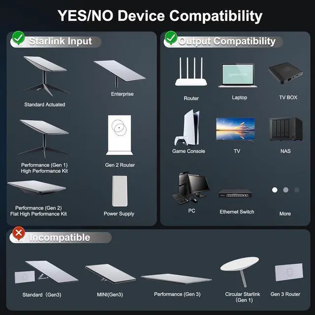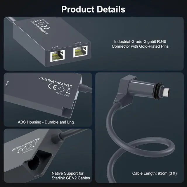 Plug and PlayNo driver required, the Starlink Ethernet Adapter can be automatically recognized by plugging into the Starlink router, quickly establishing a stable wired connection, no complicated settings are required during the installation process, and the plug-and-play function makes it convenient for anyone to use