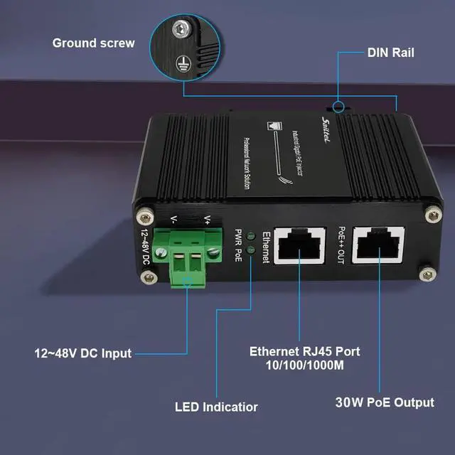 Wide Installation Methods& Application]: The poe injector supports 10/100/1000 Base-T Gigabit network and also has Din-Rail and Wall-Mount installation methods. It has high bandwidth and can support 4K/8K camera transmission. Its widely used in wireless AP / CCTV security transmission / IP phone etc