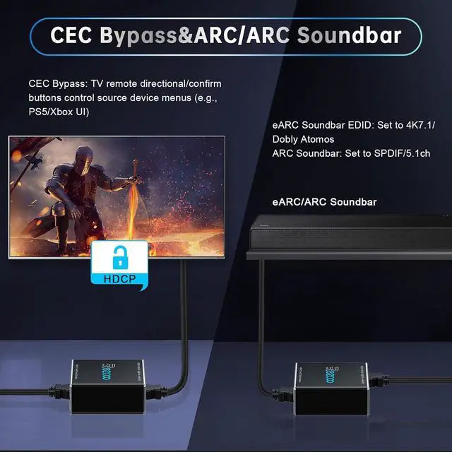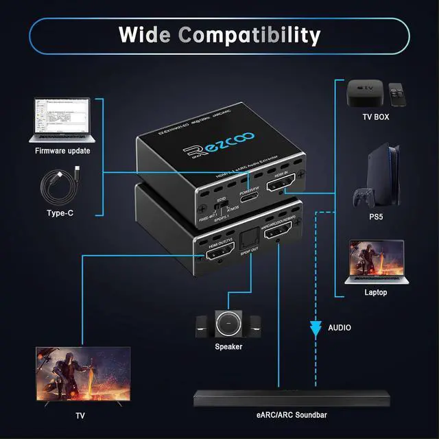 High CompatibilityPlug & Play, no driver; 8K HDMI Audio Decoder works perfectly with N-v-i-dia Shield, X-f-inity box, Game Capture, A-pple TV, F-ire TV, PS3/ PS4 Pro, PS 5 X-box series X, Switch desktop audio extract etc; Compacted design for portable, flexible, easy installation. If you encounter incompatibility, you can search for firmware updates on the official website or contact us at any time.