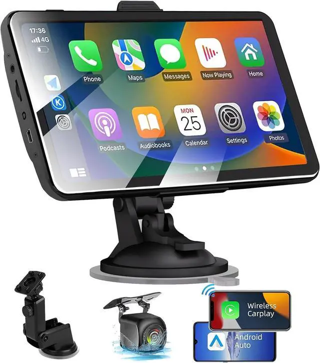 Easy to Install, Fit for Most CarsCarplay Screen for Car With DC 12V~24V voltage. Plug and play directly with dashboard via connect cigarette lighter. This portable carplay screen comes with a self-adhesive bracket which can be installed at the smooth surface like the windshield, dashboard etc. You don't need to disassemble your car's console, keep your car original radio, perfect coexistence. Suitable for almost all kinds of cars, trucks, caravans, vans, trailers, campers, etc