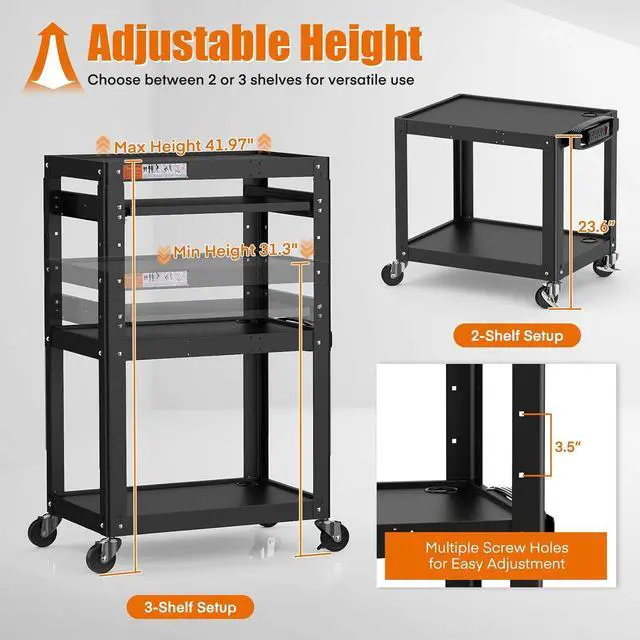 BUILT-IN CHARGING: Our cart has power strip with 4 outlets and 5.75 feet cord, The power strip attached provided for users to charge more devices.