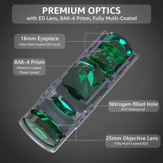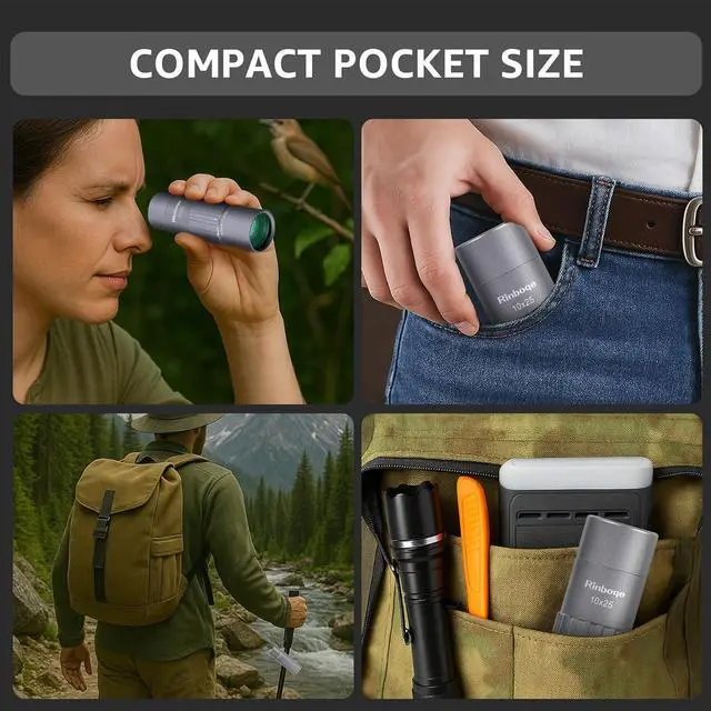 METAL MONOCULAR: nitrogen-filled housing and O-ring seals ensure excellent waterproof an fogproof performance for the pocket monocular in various humid environments such as fishing, boating and sailing. Even when completely submerged in water, this mini monocular still works well. The rugged aluminum metal structure makes the handheld monocular sturdier and more shockproof and dustproof. In harsh outdoor environments, this small telescope can always give you with reliable supports