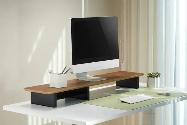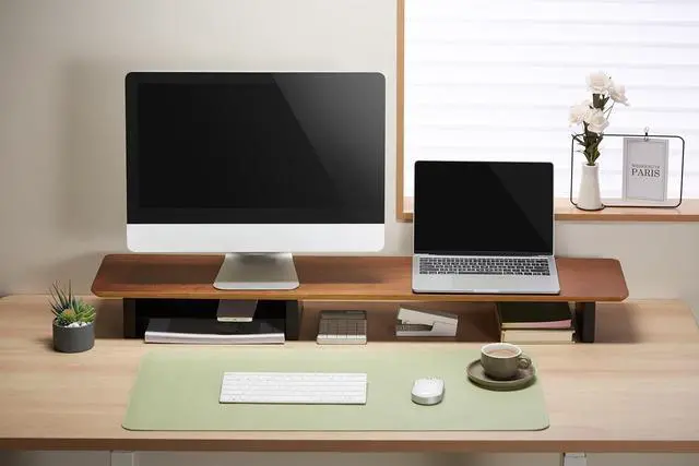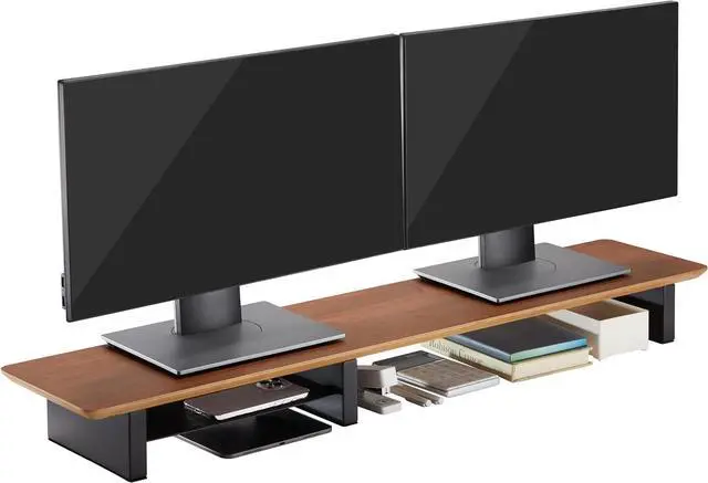 Spacious Yet Compact Measuring 43.6" x 9" x 4.2", this monitor stand offers ample room for dual monitors while maintaining a slim profile that fits neatly on most desks.
