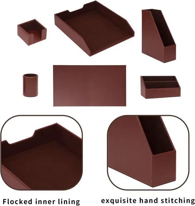 DESK ACCESSORIES SET OF 6 PIECESIncludePens/Pencils Cup, Magazine& Files Holder, Mails& Letter Sorter, Sticky Note Container, Paper Tray, Writing Pad