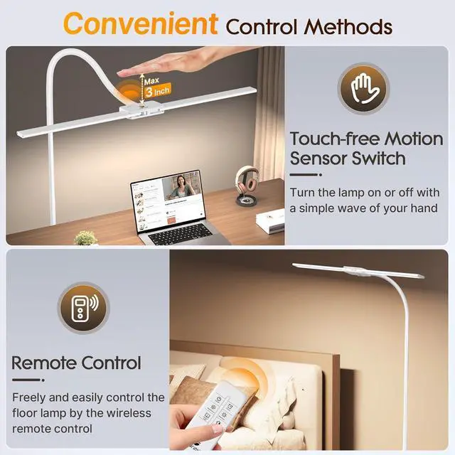 & - Featuting a 23.7 -inch ultra-wide lamp bar, this 14W bright floor lamp offers ample brightness to fully illuminate your workspace. The tall floor lamp with a 59-inch max height, provides an extensive illumination range, It is suitable for a wide array of activities such as reading, lashing, tattoing, crafting, sewing, playing the piano, and can be an excellent addition to living room, bedroom, office.