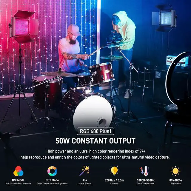 package includes: 2 * RGB video lights, 2* power cord, 2* adapter, 2* diffuser, 2* folding pages, 2* light stand, 1* carrying bag, 1* manual.