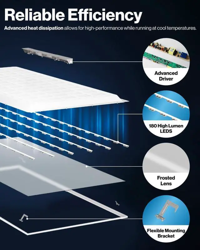 COMMERCIAL GRADE: An integrated, backlit design provides brighter and more efficient lighting and replaces outdated HID fixtures or fluorescent tubes. Suitable for recessed or suspended installation.