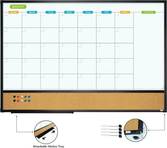 • MAGNETIC CALENDAR WHITEBOARD AND CORK BOARD COMINATION DESIGN: Magnetic dry erase calendar board has two functions with a dry erase calendar board and a bulletin board. Can provide more convenience for your work and life.