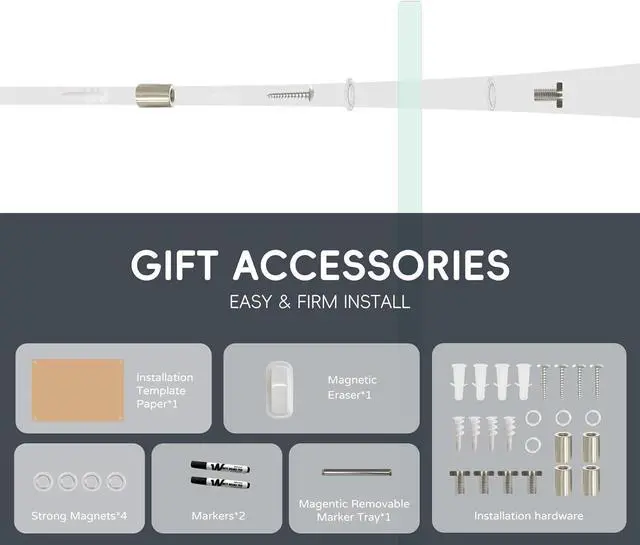 Enhanced Functionality: Our magnetic glass whiteboard comes with 4 strong magnets, 2 markers, 1 magnetic eraser, and a magnetic removable aluminum marker tray, offering everything you need for an efficient and organized workspace. The powerful magnets ensure your documents stay securely posted.