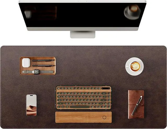 Large Thick Desk Pad4mm thickness designed, super durable and sturdy, and very soft feeling. This desk mat is combined with full grain cow leather and soft rubber bottom. Its resilience is particularly good. So this desk pad not easily wear and deform and can effectively protect your desk from scratches, stains, spills, heat and scuffs, letting your hands and elbows have a great rest area, stay away from the cold and hard desk surface.