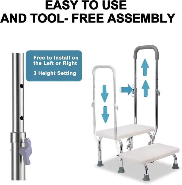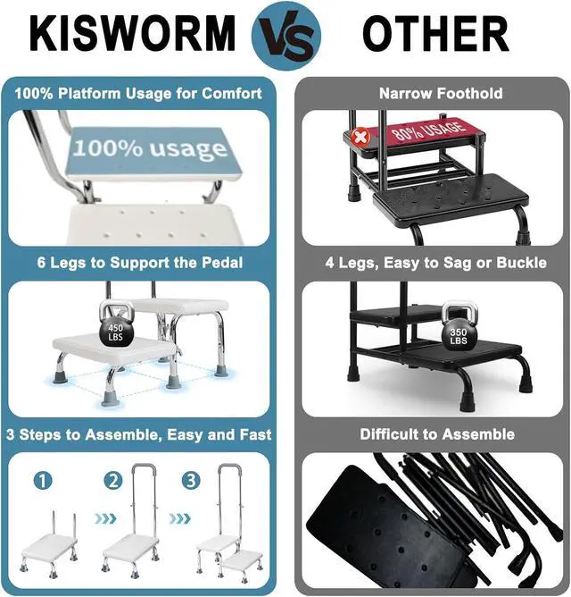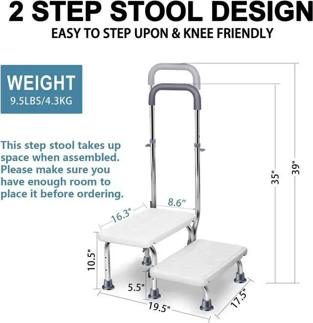 Durability: High bed step stool made of durable, easy to clean, waterproof materials. Iron frame treated with anti-rust coating for long-lasting use
