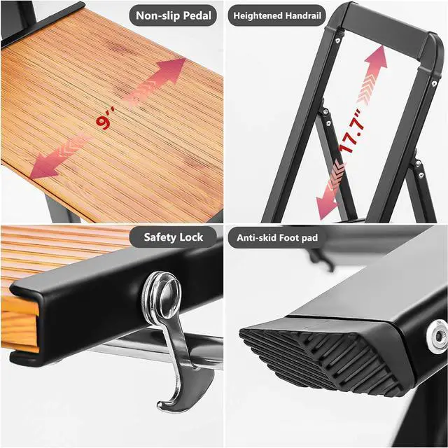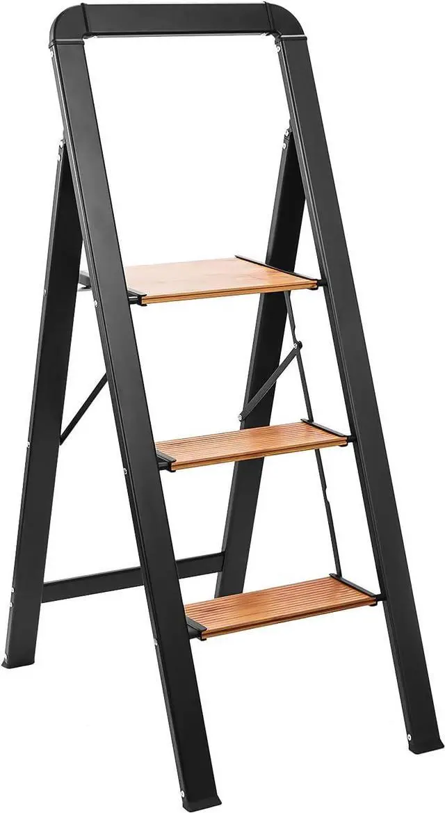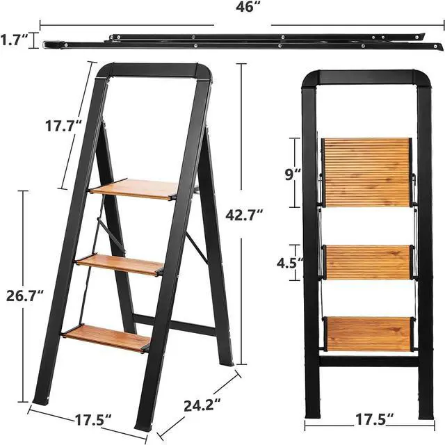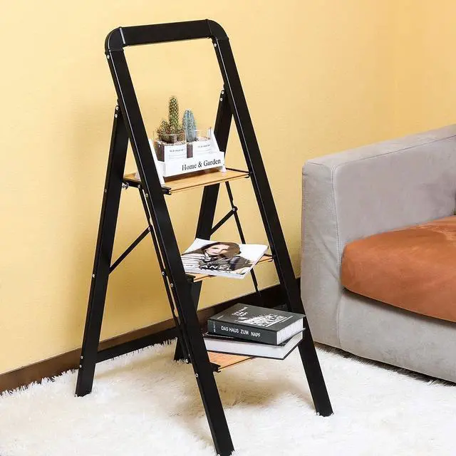 FIT PERFECTLY WITH WOOD DECOR: 3 anti-slip feet help add stability and safety, and also protect your floor from scratching. With high-quality woodgrain print,, it could keep the ladder good-looking for a long time. We are sure the decorative ladder will meet your home needs. When in use, it's a tool; without use, the home ladder could be a display stool for carrying things.