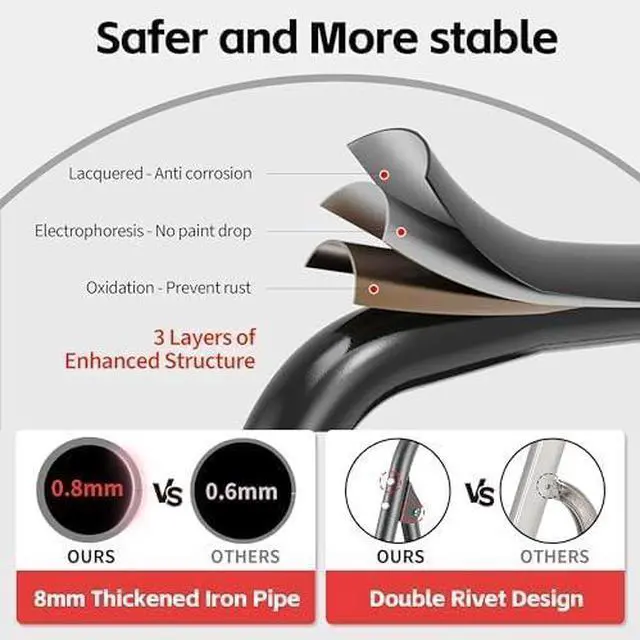 Non-Slip Ergonomics for Confident Use - Our ladders are designed with wide, non-slip iron treads for heel-to-toe support and sponge-covered handrails for a firm, comfortable grip that gives you confidence when climbing the ladder. Our ladders come with large rubber feet that grip the ground securely to prevent movement and scratches to the floor. The unique curved design gives more leg room and protects your legs from knocks.
